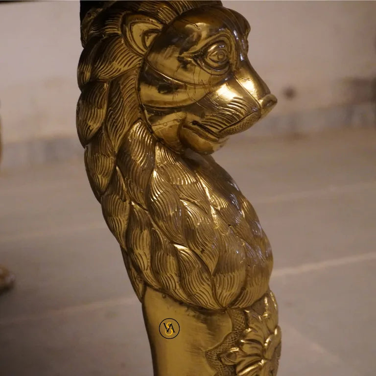 - High back chairs with Hand Carvings and brass finish on the armrest of winged lion chairs.